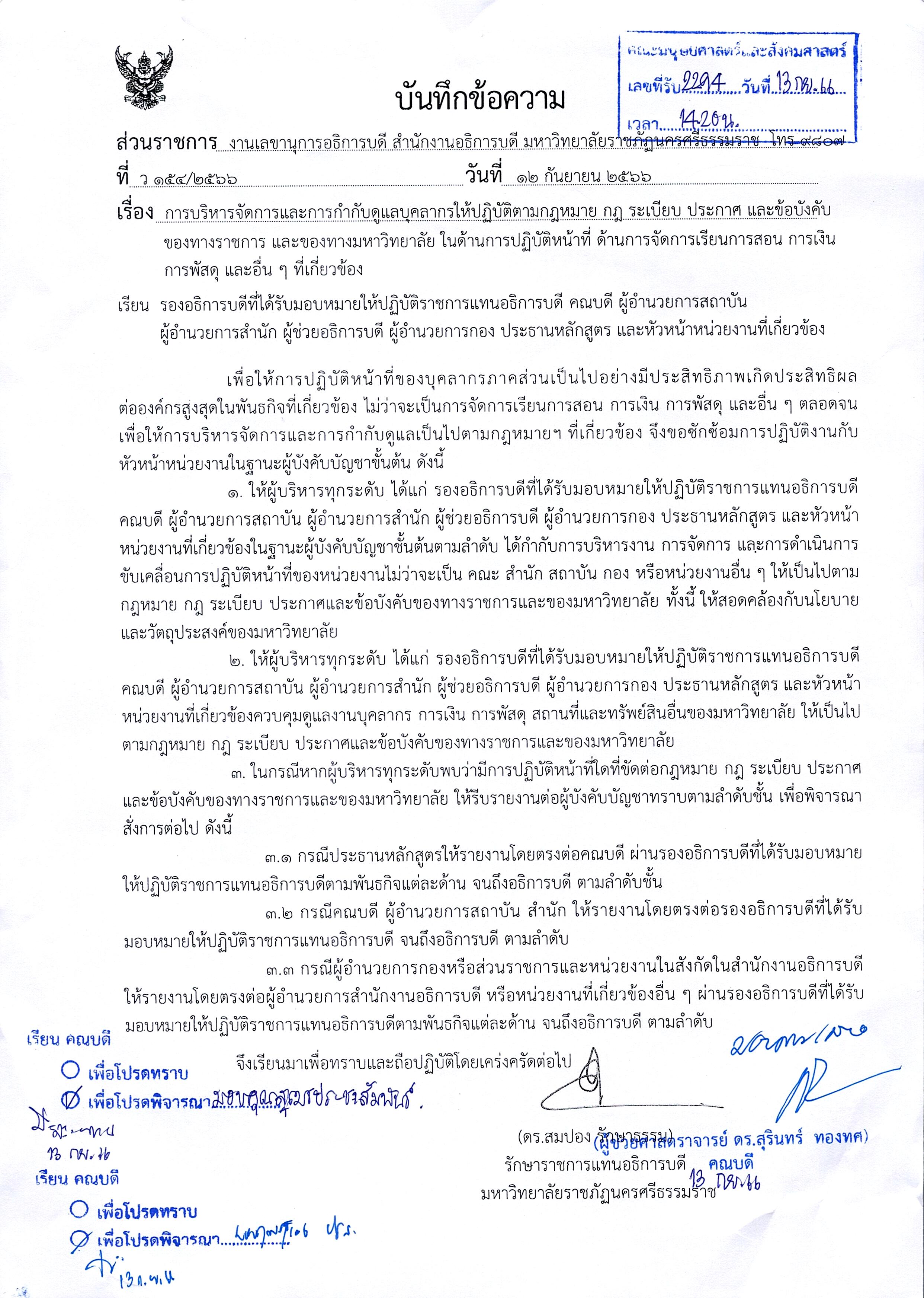 งานเลขานุการอธิการบดีการบริหารจัดการและการกำกับดูแลบุคลากรให้ปฏิบัติตามกฏหมาย กฏ ระเบียบ ประกาศ และข้อบังคับของทางราชการ
