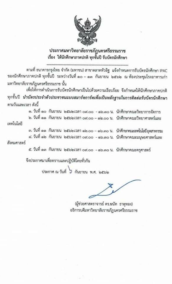 ประชาสัมพันธ์... การสัมมนาหลังฝึกประสบการณ์วิชาชีพทางรัฐประศาสนศาสตร์ นักศึกษาภาคปกปกติ แล ภาค กษ.บป สาขาวิชารัฐประศาสนศาสตร์ คณะมนุษยศาสตร์และสังคมศาสตร์ มหาวิทยาลัยราชภัฏนครศรีธรรมราช ประจำภาคเรียนที่ 2 ปีการศึกษา 2561 วันที่ 13 พฤษภาคม 2562 เวลา 08:30