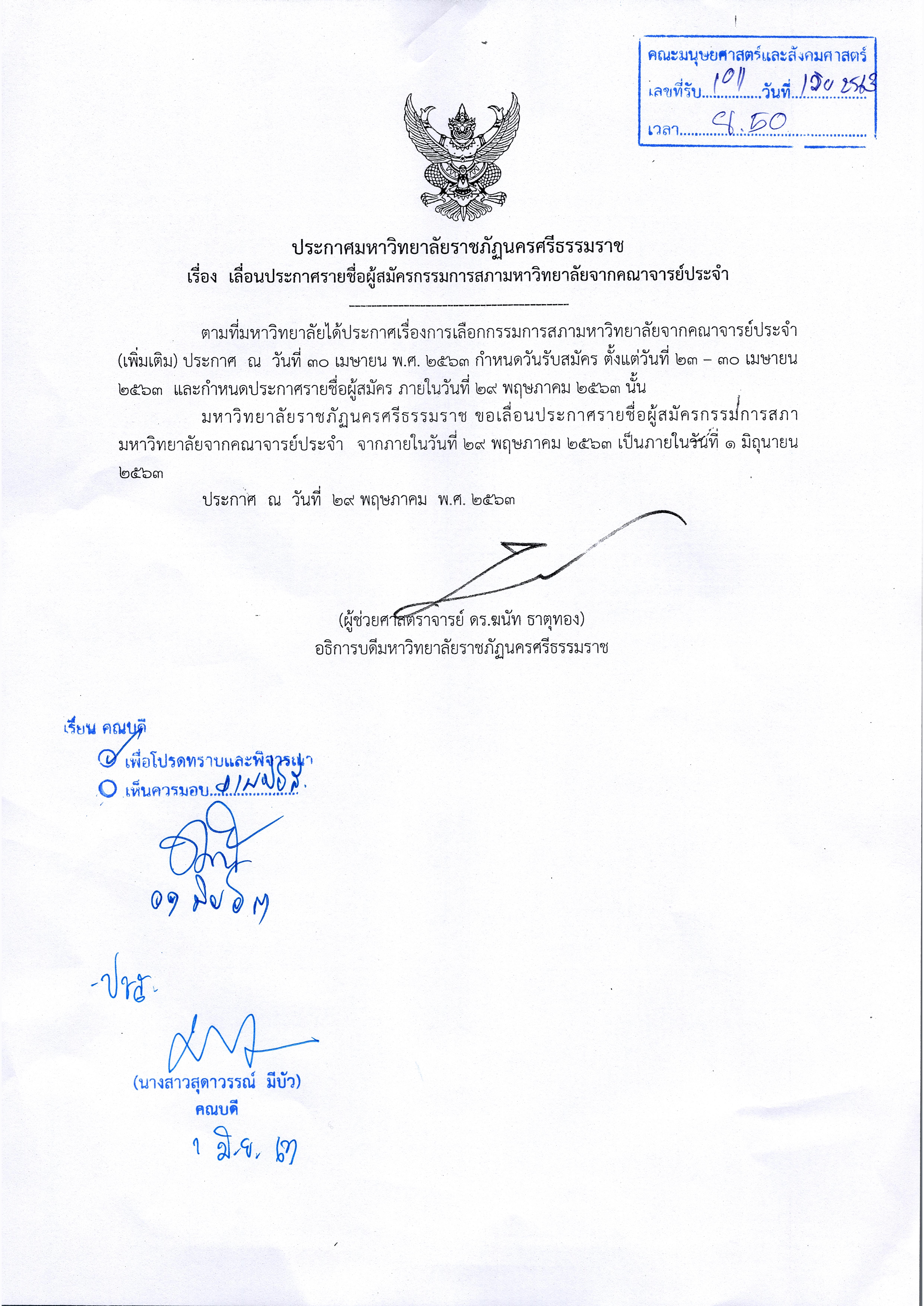 เลื่อนประกาศรายชื่อผู้สมัครกรรมการสภามหาวิทยาลัยจากคณาจารย์ประจำ