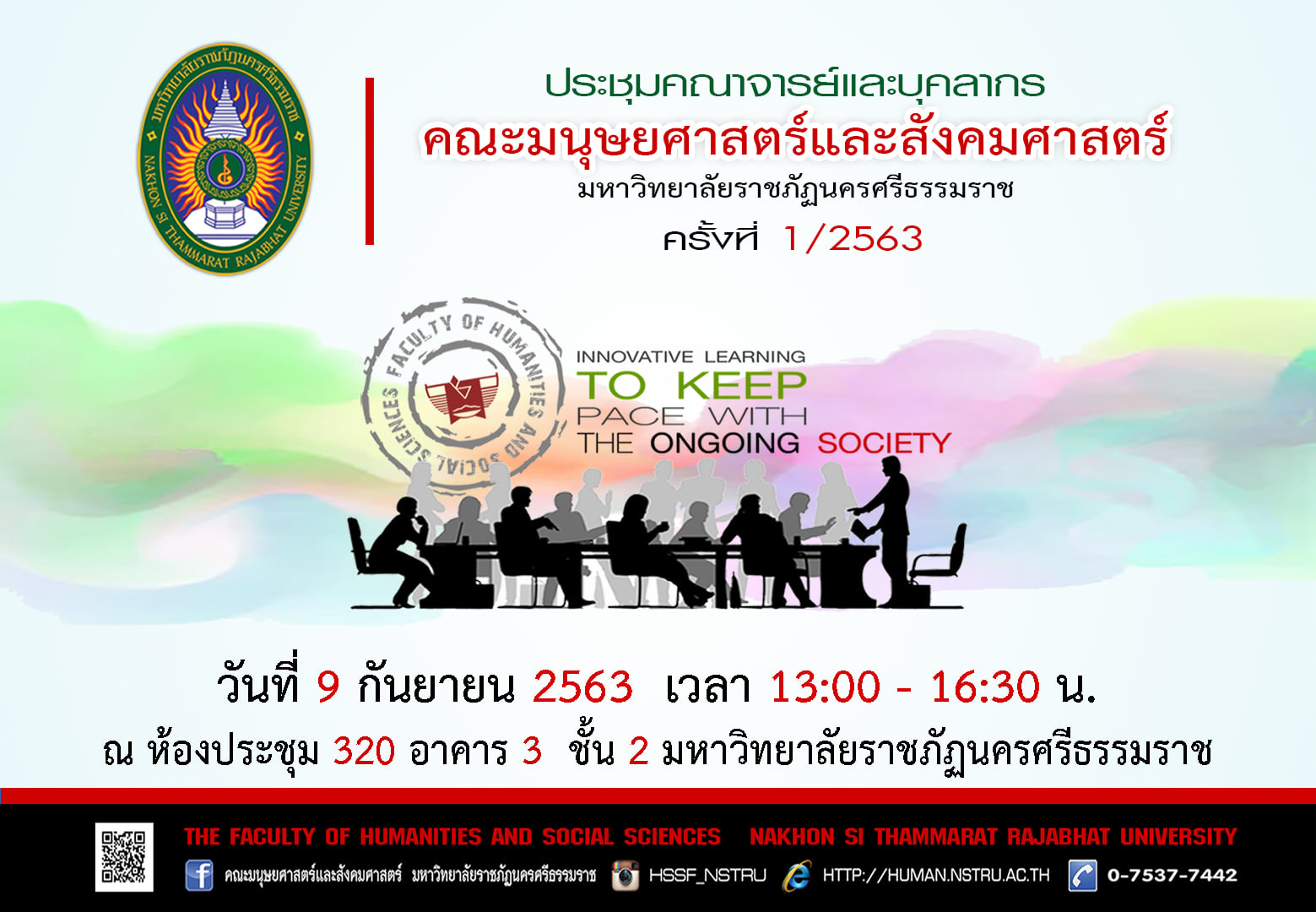 ประชุมคณาจารย์และบุคลากร คณะมนุษยศาสตร์และสังคมศาสตร์ มหาวิทยาลัยราชภัฏนครศรีธรรมราช ครั้งที่ 1/2563 และการแสดงมุทิตาจิตแด่ผู้เกษียณอายุราชการประจำปี 2563 - ผศ.ดร.พงษ์ศักดิ์ สังขภิญโญ อาจารย์ประจำสาขาวิชาการจัดการสารสนเทศ คณะมนุษยศาสตร์และสังคมศาสตร์ มหาว